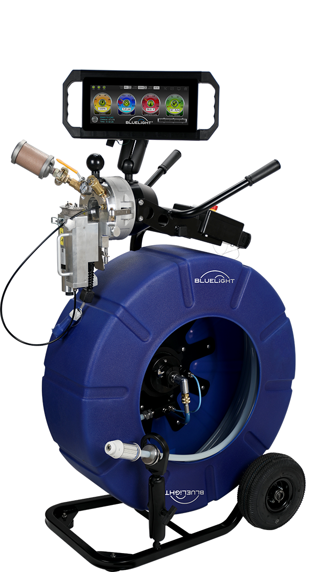 The redesigned Bluelight system features an intuitive touch-screen interface that is easy to learn and operate. Simply input the job specs and the system will automatically set pull-back speed. On the screen, the installer can watch curing progress on a live feed from the LED light head’s integrated camera, and the boldly colored gauges make it simple to monitor the system’s performance throughout lining operations.