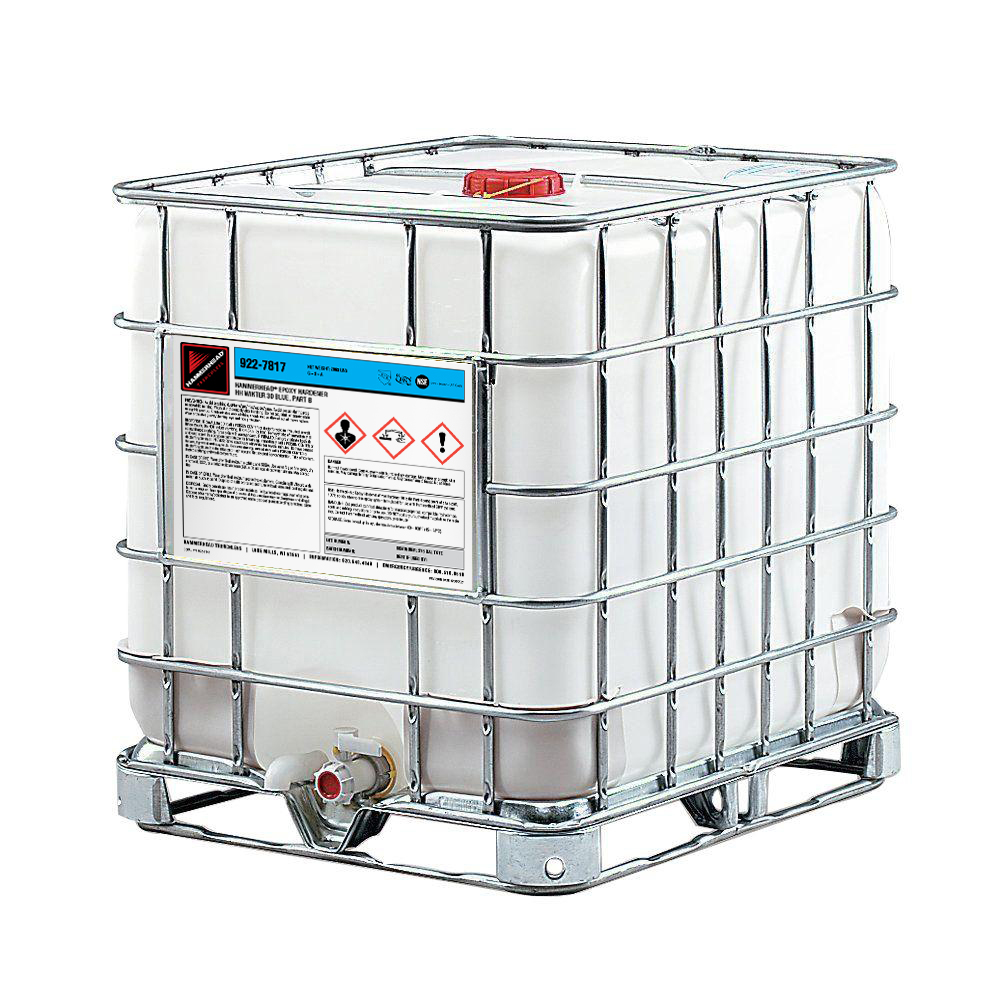 A blue tinted hardener providing 15 minutes working time at 77°F (25°C); useful for colder temperatures and short run applications requiring a faster cure time. Mixed 4:1 (A:B) by weight (3.3:1 by volume). When the yellow resin base is properly mixed with the blue hardener, a uniform aqua green color is achieved.